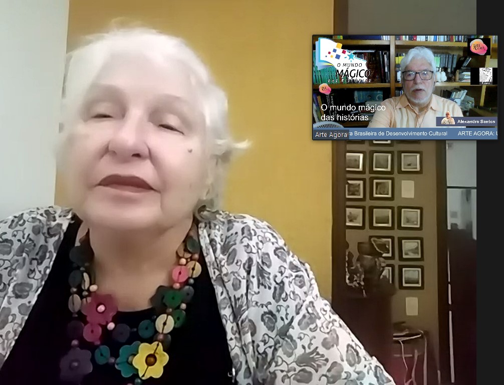 Na 5ª feira, dia 17 de agosto de 2023, em encontro transmitido ao vivo pelo Canal Arte Agora no YouTube, a contadora de histórias Marúcia Coelho apresentou programa ‘O Mundo Mágico das Histórias’ com destaque para o livro ‘Lá fora’, de André Neves.